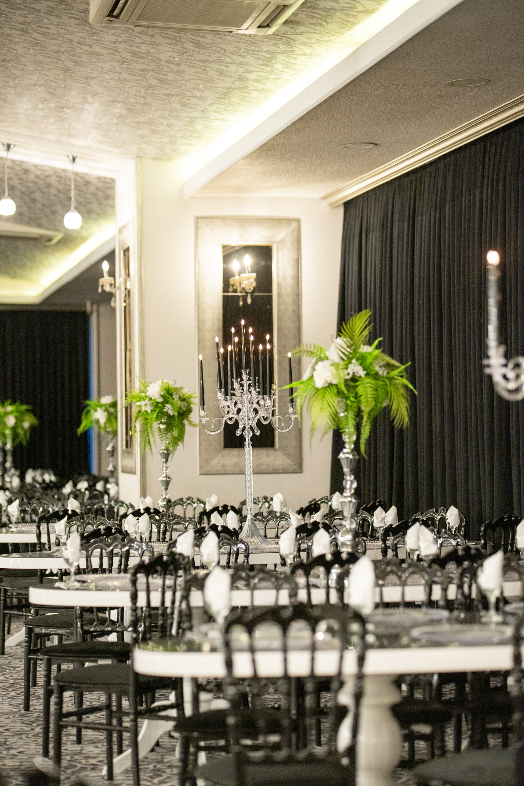Gümüş detaylarla tasarlanmış zarif salon, daha sade ve samimi organizasyonlar için uygun alternatif
